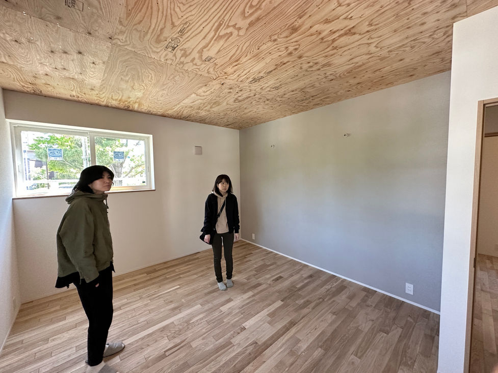 道産カラマツ梁・道産針葉樹合板表しの空間をシンプルかつ