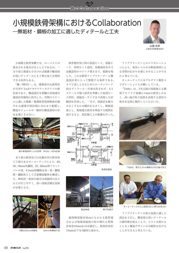 60mm、50mm、38mm角鋼柱と4.5mm厚鋼板の棚がもたらす空間は、構造部材の存在を感じず、広がりを感じられる空間になった。