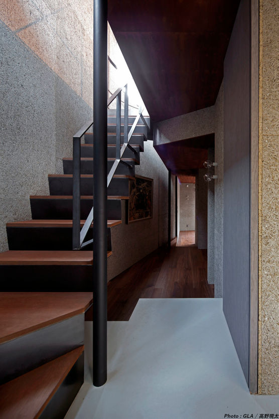 開放的な内部空間を実現しつつ耐震性能を持たせるため「ダブル両面合板壁」を採用、建築基準法による必要壁量の1.25倍程度を確保している。