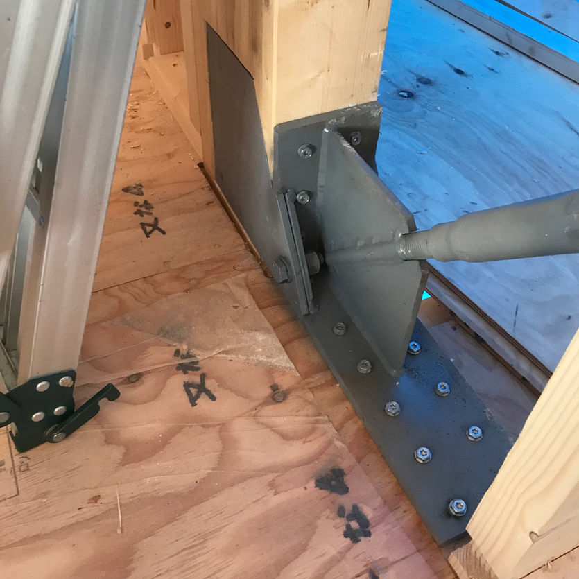 引張力を支える鋼板のおさまり、跳ね出し床梁のおさまりは